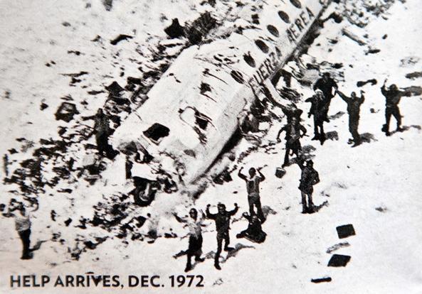 Alcuni dei 16 sopravvissuti fotografati dai primi soccorritori giunti sul luogo del disastro tre mesi dopo l’incidente, nel dicembre 1972