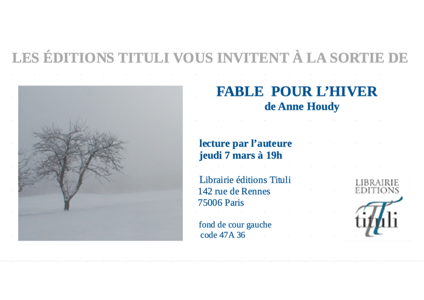Anne Houdy, Fable pour l’hiver, Editions Tituli, Paris, 2019.