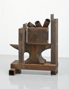 Généralement, les outils sont des compagnons pour traverser la vie et avoir une certaine préhension sur elle. Quittant son minimalisme original, Anthony Caro en efface le temps d’usage. Ici, il semble d’une certaine manière que rien n’a jamais commencé même si ce que l’artiste rassemble a connu les avanies de l’usure et de la rouille. Dans leurs assemblages, les objets racontent une autre histoire d’une manière froide, neutre mais savante. Reste l’autrefois de toujours qui n’a jamais cessé mais au nom de quoi il s’agit de tirer chaque chose de ces vieilles affaires en la mettant « à » et sur table pour qu’elles parlent autrement.