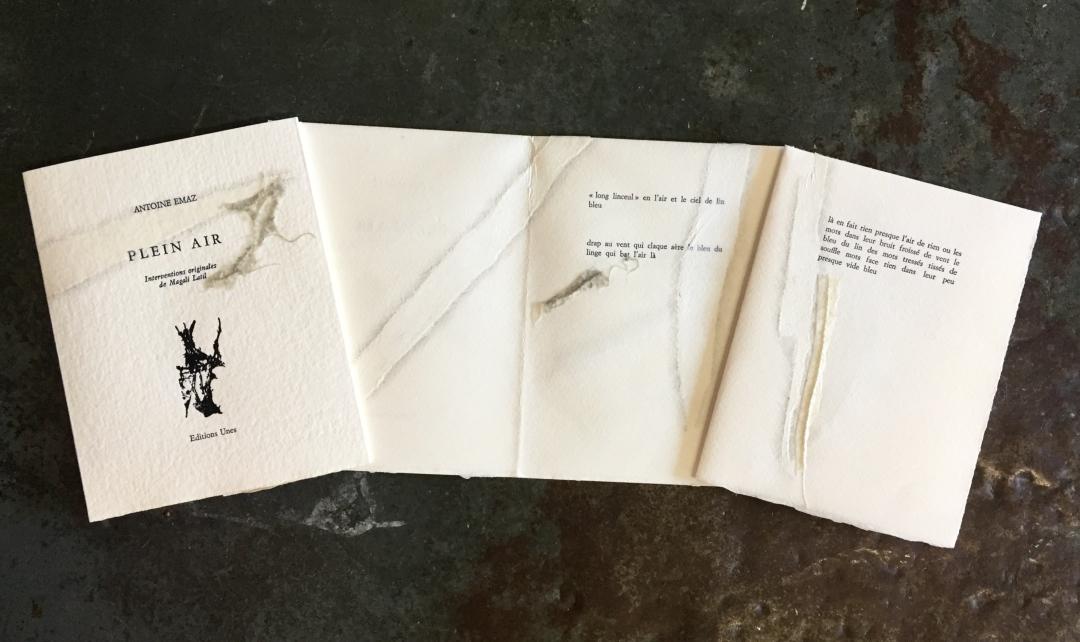 Antoine Emaz & Magali Latil,  Plein air, Editions Unes, Nices, Edition limitée à 33 exemplaires numérotés, 2018.