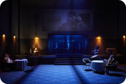 Le spectacle débute par un film qui plante le décor et l’histoire : le remorquage d’un bateau accidenté vers le pôle Nord amène des clandestins à prendre place à bord : chacun paie sa place, embarquant vers l’inconnu pour le meilleur ou pour le pire. Cantonnés dans le grand salon, où les voyageurs pouvaient se réunir et assister à des spectacles, nos passagers définissent péniblement leurs rapports et explorent chacun à leur façon les différents espaces du navire.
