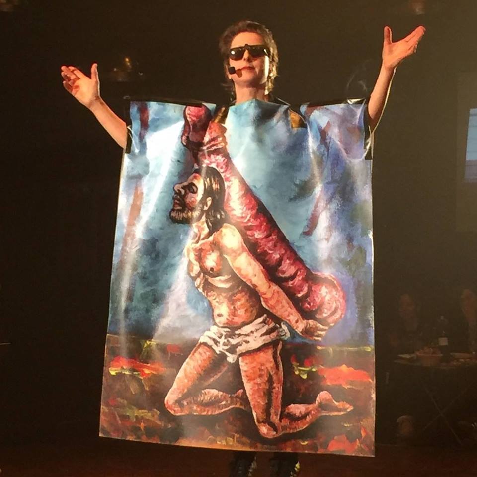 Cofondatrice de la revue « Freak Wave », Anne Van Der Linden reste une iconoclaste underground. Pour notre pur plaisir, elle ose presque tout. Ses femmes aussi. Et même les figures christiques montent sur le Golgotha chargées de bardas intempestifs. Chaque membre dans cette ménagerie humaine se déguste avec les doigts. Le sang circule et la nuit brûle parmi les « freaks », leurs frocs et leurs frasques. Les femmes de l’artiste ne sont jamais sages et ne se privent ni de leurs mains ni du reste.