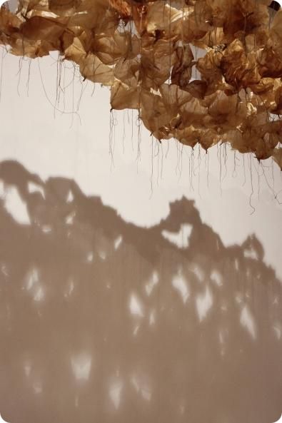 La récupération, accumulation d’objets, la répétition de gestes sont à l’origine des rituels singuliers d’une artiste rare. D’où et par exemple ce travail autour du sachet de thé, qu’elle a exploré pendant une décennie en s’intéressant aussi bien au contenant qu’au contenu. Chez elle, la notion d’enveloppe est importante.