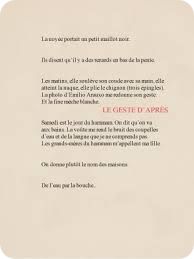 Tout dans ce livre est de l’ordre sinon de l’effacement du moins de l’absence : jusqu’au nom de l’auteure, le titre, le nom et l’adresse de l’éditeur (indiqué sur un carton inséré dans le livre). Et comme le précise l’auteure : « Pas de chapitres, ni de titres, ni de sections, pas de progression, pas de bords. La dernière phrase est un saisissement, pas un aboutissement. »