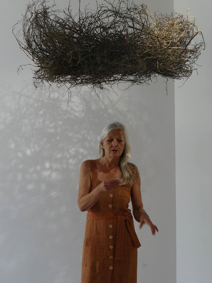 Inspirée par la pipe de son père elle en a créé une « faite de terre, d’un os de bovin et d’un bijou Touareg ». Chacune de ses œuvres est souvent enveloppée dans un linge blanc qu’elle déplie soigneusement selon un rituel minutieux. Animée par un sentiment profond de la nature, elle crée un collier de glycine réalisé pour un arbre, fait un collier avec des os de veau ou avec des vertèbres de boeuf. « Lorsque je l’ai mis autour du cou, cela m’a fait penser aux fleurs de Tiaré. Ça m’a fait voyager à Tahiti.» écrit celle de chair et d’os pour qui l’art est aussi rupestre, premier que sophistiqué dans son travail de méthode.