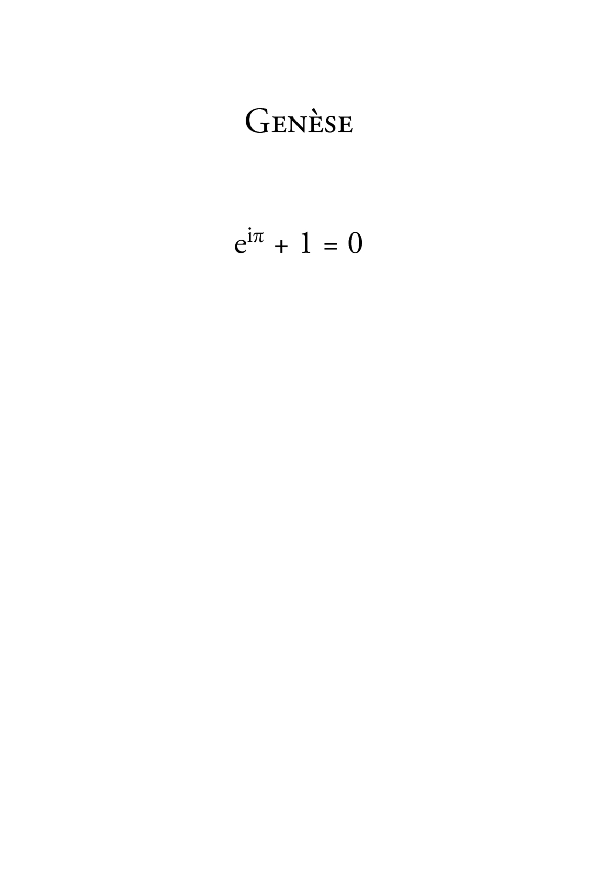 Christine Bonduelle, Genèse e i pi + 1 = 0, Editions Tituli, Paris, 2015.