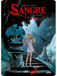 Christophe Arleston (scénario), Adrien Floch (dessins) Fred Blanchard (desings), Claude Guth (couleurs), Sangre – t.1 : « Sangre la survivante« , Soleil, octobre 2016, 56 p. – 14,95 €.
