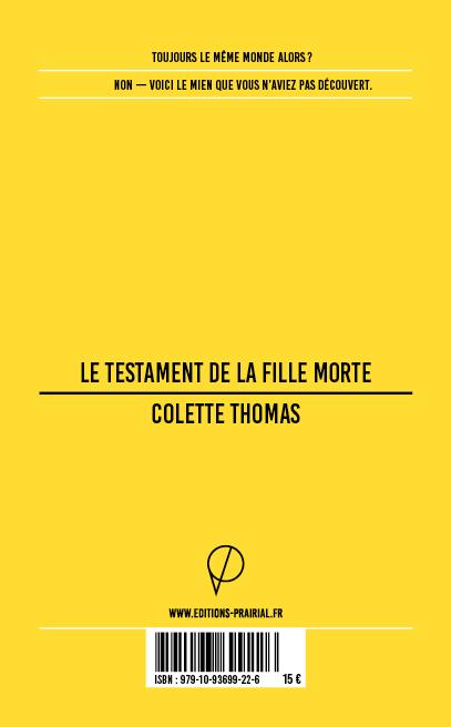Colette Thomas, Le testament de la fille morte, postface de Pacôme Thiellement, éditions Prairial, Paris, 2021.