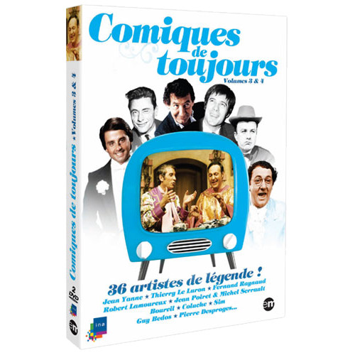 Après les volumes 1 et 2 (Jacqueline Maillan, Raymond Devos), voici les volumes 3 & 4 de Comiques de toujours : une nouvelle occasion de se remémorer les sketches les plus drôles des humoristes français (36 artistes différents !), avec des « petits nouveaux » : Coluche à ses débuts, Thierry Le Luron, Michel Leeb, Michel Boujenah ! Le volume 4 est en partie dédié à la pièce de théâtre « La Cage aux folles » de 1973, jouée par Poiret et Serrault, avec des extraits bien sûr, mais aussi des interviews et reportages autour de cette pièce mythique, adaptée au cinéma en 1978 ; ces images sont totalement inédites en DVD.