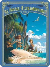 Denis-Pierre Filippi (scénario), Silvio Camboni (dessin), Gaspard Yvan e& Valérie Martineau (couleurs), Le Voyage Extraordinaire – t.5 : cycle Les Îles mystérieuses 2/3, Vents d’Ouest, mai 2017, 48 p. – 13,90 €.