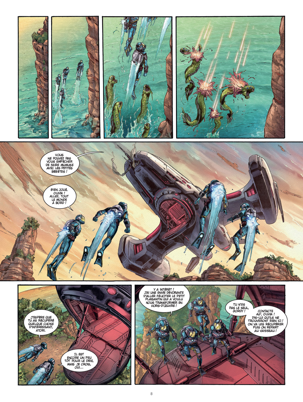 Utilisant un modèle de porte qui active des trous de ver, ils se téléportent. Très vite, ils sont cernés par des Écumeurs qui ont à leur tête Jonas et Daphné, tous deux bien connus de Milla et de Clarence. Daphné explique qu’elle les a rejoints car ils ne sont pas comme on les présente. En fait, ils cherchent à découvrir ce que cachent des responsables Atils qui s’intéressent aux premiers colons. Ce sont eux qui envoient l’équipe sur des fausses pistes. Milla et ses collègues vont être entraînés dans une folle équipée pleine de dangers et de découvertes désagréables…
