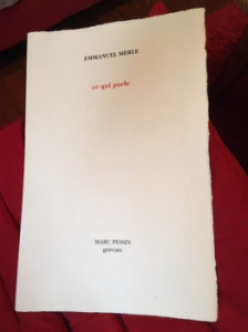 Emmanuel Merle & Marc Pessin, Ce qui parle, Edition Le Verbe et L’Empreinte, Saint Laurent du Pont, (Isère), 2019.