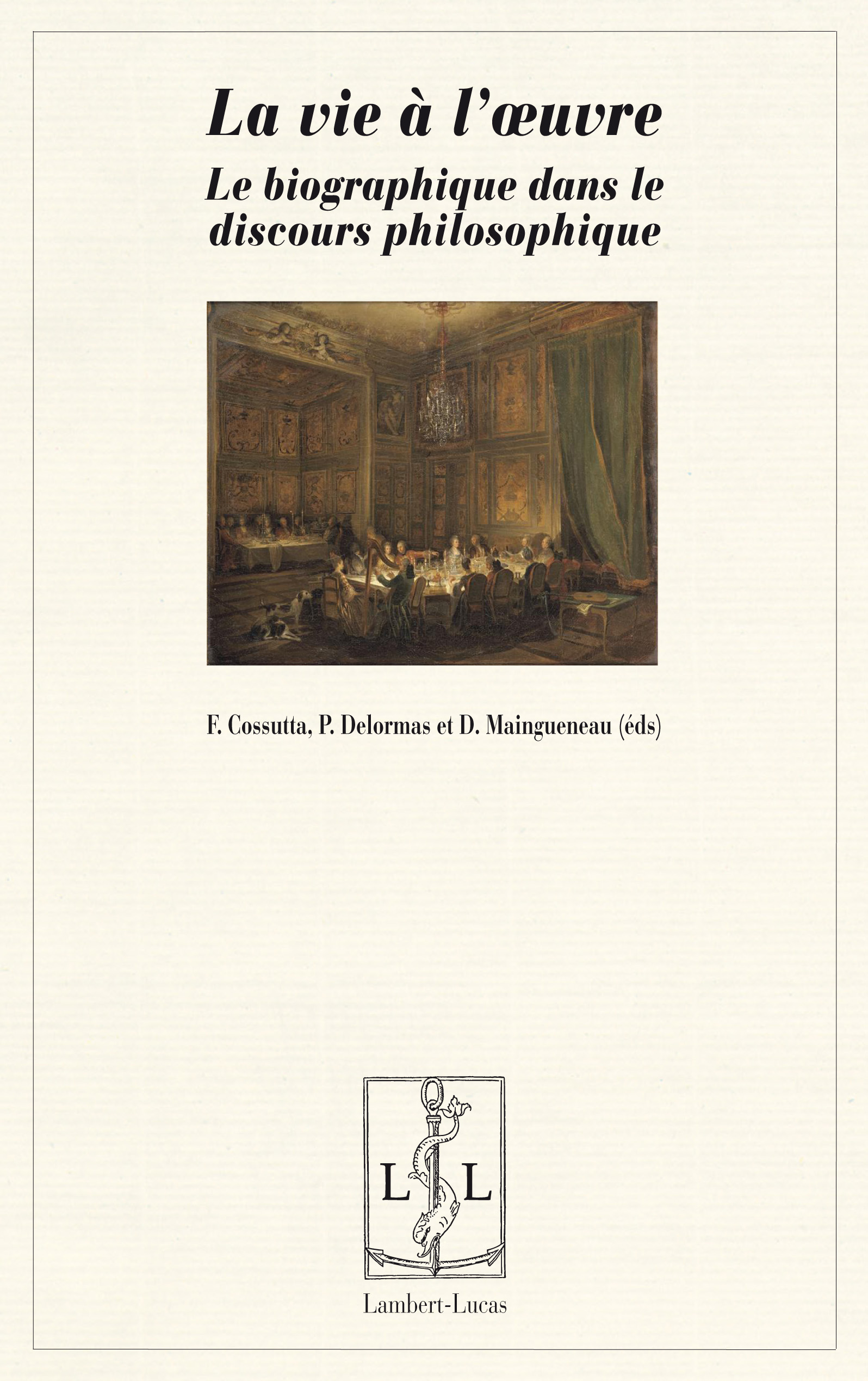 Frédéric Cossutta, Pascale Delormas et Dominique Maingueneau (éds), La vie à l’œuvre. Le biographique dans le discours philosophique, Éditions Lambert-Lucas, déc. 2012, 150 p. – 15,00 €.