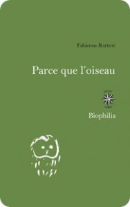 Fabienne Raphoz, Parce que l’oiseau,  Editions José Corti, coll. Biophilia, Paris, 2018, 192 p. – 18,00 €.