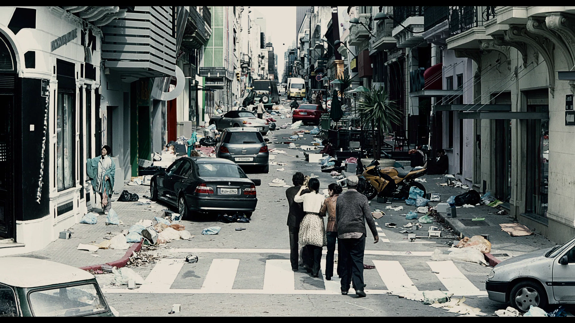 Par exemple, dans notre extrait des premières minutes du film, on voit parmi les passants contaminés par l’épidémie de cécité l’un d’eux obéir immédiatement à un élan d’altruisme envers le malheureux conducteur, tombé aveugle, de la voiture arrêtée au feu, tandis qu’un autre se propose de le reconduire à son domicile – mais c’est parce qu’il prévoyait déjà de lui voler sa voiture ! Reste que, n’en déplaise à Freud, si la part animale des malades en quarantaine refait surface, leur cerveau reptilien ne l’emporte pas complètement : l’argent continue de valoir comme élément symbolique essentiel alors que sa valeur réelle est nulle dans ce lieu, le médecin qui ne supporte plus d’être materné par sa femme préfère encore « faire le mal » (i.e céder à ses pulsions de mâle) avec une autre femme… Même peu appréciables, certains fondations culturelles résistent.