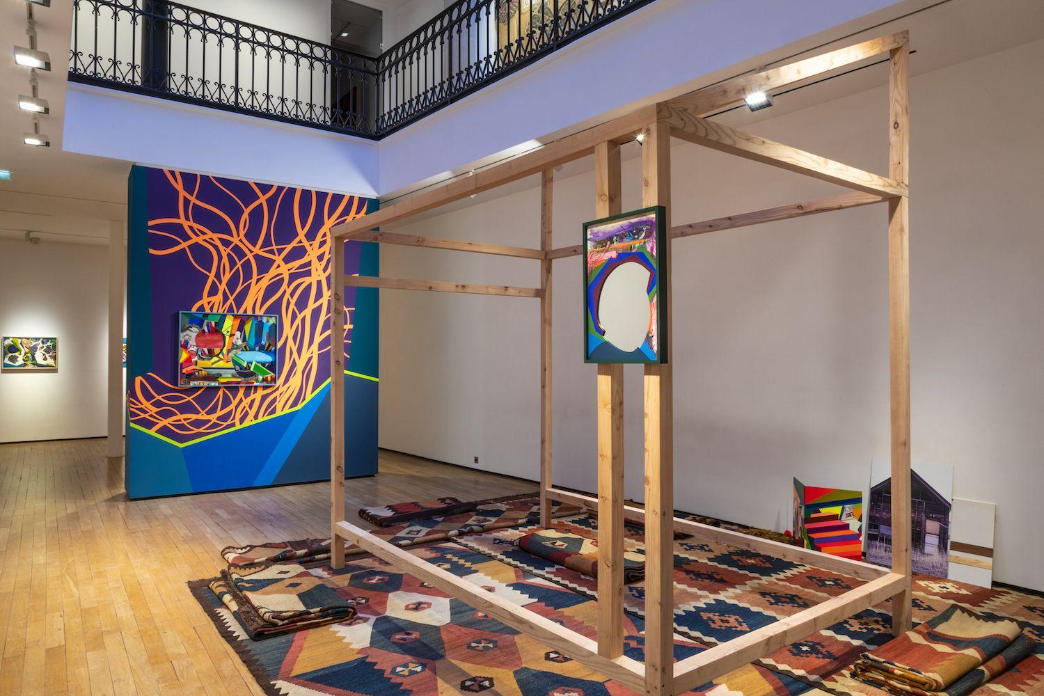 Franz Ackermann transforme l’espace de la galerie à Paris avec une installation immersive. Elle a pour but d’interroger la notion de voyage physique et mental. L’artiste place en plein coeur de la galerie une cabane d’inspiration géorgienne Elle laisse entre-apercevoir un tapis persan posé sur le sol.