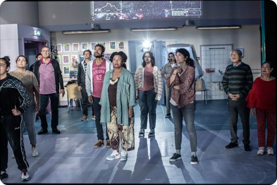 Le postulat de Caroline Guiela Nguyen est que la fraternité se nourrit d’absence ; il y a là comme une exploration de la détresse constitutive de l’humanité. Lors de la deuxième partie, le propos heureusement évolue : l’idée d’une coalescence entre les sentiments de l’humanité et l’état de l’univers est explorée. Une autre éventualité est présentée : des scientifiques proposent d’alléger sa mémoire pour ne conserver que trois souvenirs.