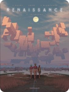 Fred Duval (scénario), Emem (dessin et couleur) & Fred Blanchard (design), Renaissance : t.01 – Interzone, Dargaud, septembre 2019, 56 p. – 14,00 €.