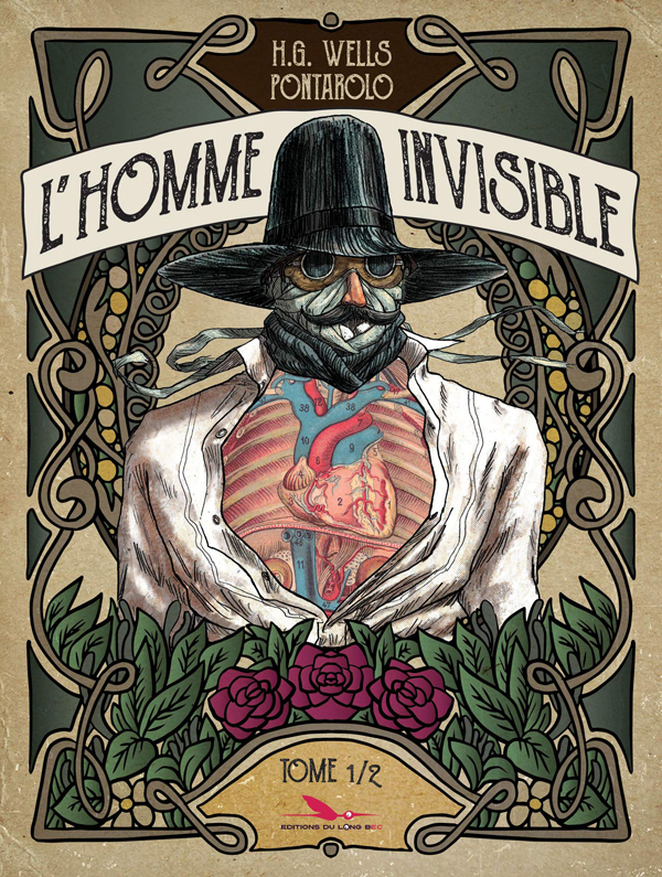 A l’image de la couverture de l’album, dans l’épais carton de laquelle se trouve découpé le buste de l’anti-héros pour faire voir les entrailles du personnage (grâce à une planche anatomique en couleurs située derrière, en page de garde), Jack Griffin aspire à la normalité et à être réintégré dans le « corpus » de l’humanité. Car sous les bandages de l’homme invisible, c’est d’abord un homme qui s’agite, c’est bien le coeur non d’un spectre mais d’un homme qui bat.
