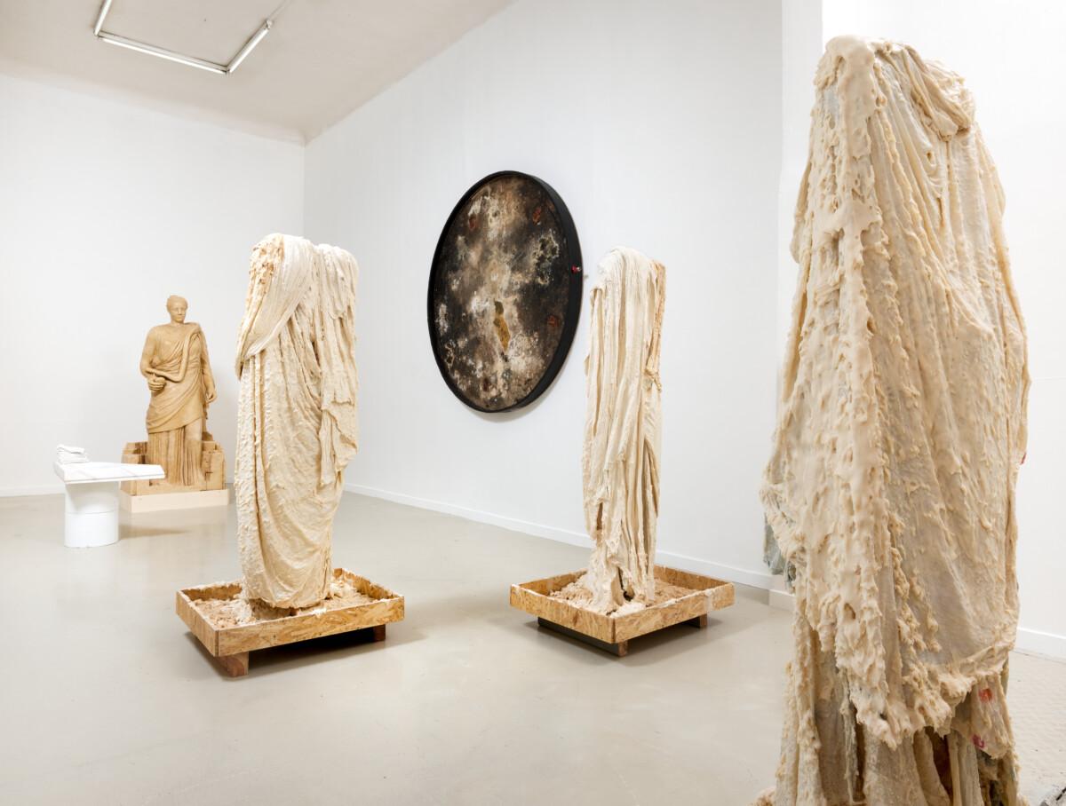 L’artiste saisit, trempe, froisse, manipule, sculpte le savon. Hygie et Panacée personnifient ainsi la santé et le remède universel, là où la galerie devient un temple en résonance avec notre temps de pandémie.