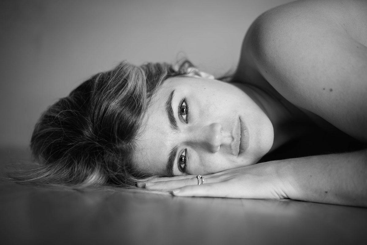 Tout de suite, nous sommes touchés par la pudeur et la profondeur qui se dégage de ses portraits. De face, de profil, de trois-quarts, de dos, une femme a quelque chose à nous dire. Est-ce une lumière travaillée, retravaillée par le photographe ? Un travail sur les ombres ? Sans doute. Les ombres mettent en relief l’expression. Les yeux sont grands.