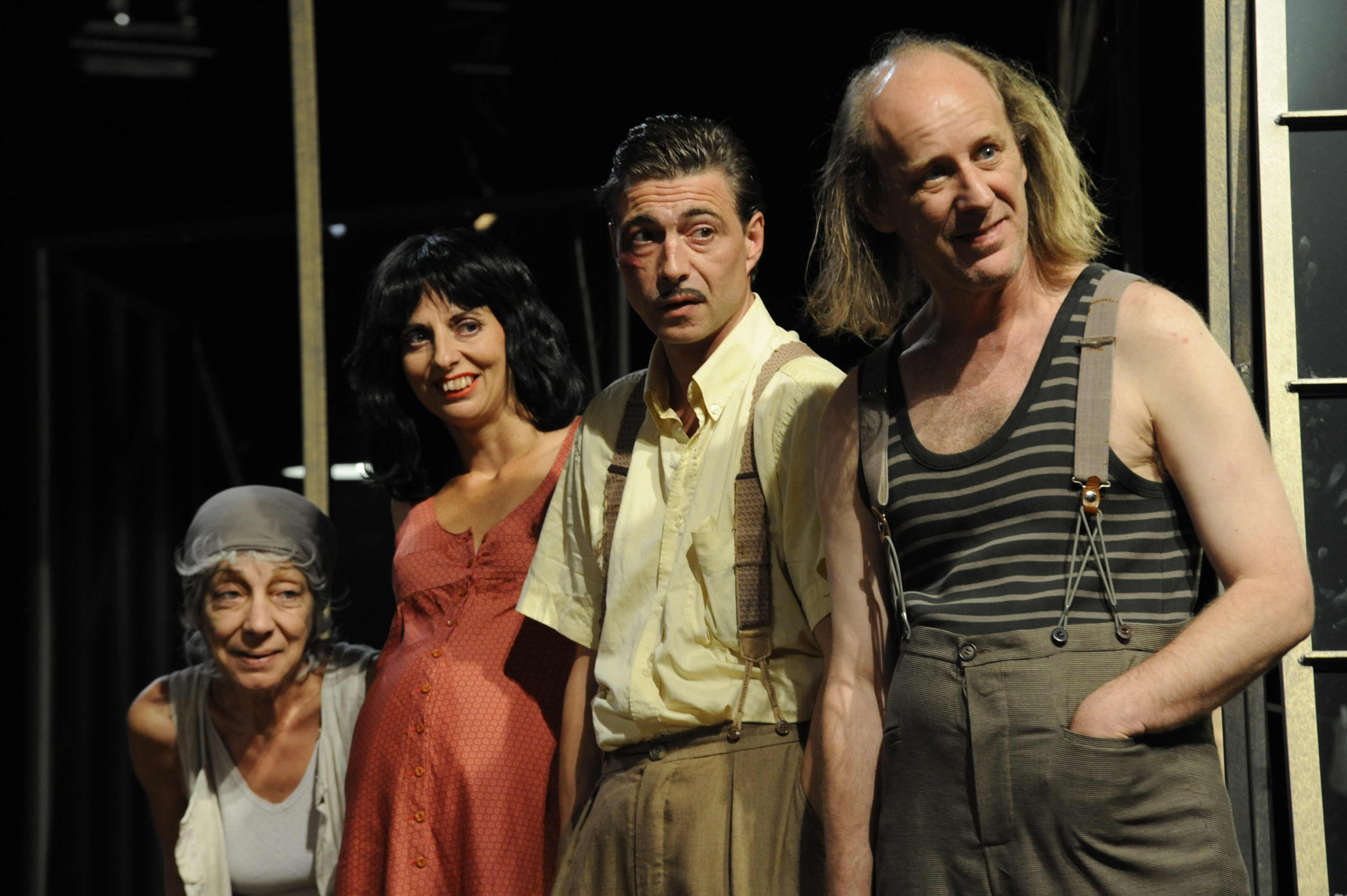 Une introduction musicale découvre un décor aéré, modulable, fait de cloisons transparentes, dans lequel les acteurs apparaissent et se meuvent allègrement. La pièce met en scène une troupe d’artistes dramatiques aux talents douteux, à la verve certaine, qui doit encore assurer les moyens de sa subsistance. Cela fournit le prétexte à négociations, à répétitions, à rebondissements. Une intrigue se noue autour d’une relation entretenue par le gérant de l’hôtel. Cette trame engendre de nombreux rebondissements d’allure judiciaire construisant une tragicomédie sur un mode vivace. Le texte est léger mais les dialogues sont souvent cocasses, plaisants et d’un comique efficace. Le propos met aux prises des personnages de conditions très différentes mais n’a pas de vocation sociale particulièrement affirmée ; il s’en tient à donner une image attachante des comédiens. (© photo E. Lizambard)
