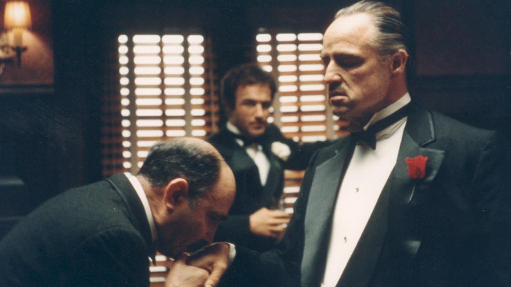 Il protagonista Marlon Brando nel ruolo di Don Vito Corleone in una delle scene più iconiche del “Padrino”: la pellicola vinse nel 1973 tre premi Oscar su dieci nomination
