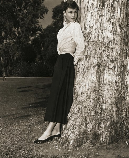 Non si può fare a meno di pensare che lo stile che lei portava sul grande schermo coincidesse con la vita di tutti i giorni, e in un certo senso è vero: a parte gli abiti da gran sera, che lei indossava solo nelle rarissime occasioni mondane cui partecipava (non è mai stata particolarmente amante del jet-set), il suo gusto è ravvisabile in molte, moltissime scelte. Le ballerine colorate preferite dai suoi personaggi, retaggio del suo passato da ballerina, i cappotti lunghi e morbidi portati in “Sabrina”, le gonne a ruota di “Vacanze romane”, i tubini con gli scolli montanti di “Sciarada”, il trench di Burberry di “Colazione da Tiffany”, il pull e i pantaloni neri abbinati coi mocassini e i calzini bianchi di “Cenerentola a Parigi”: sono tutti “suoi” look, senza ombra di dubbio, e per questo funzionano tanto.