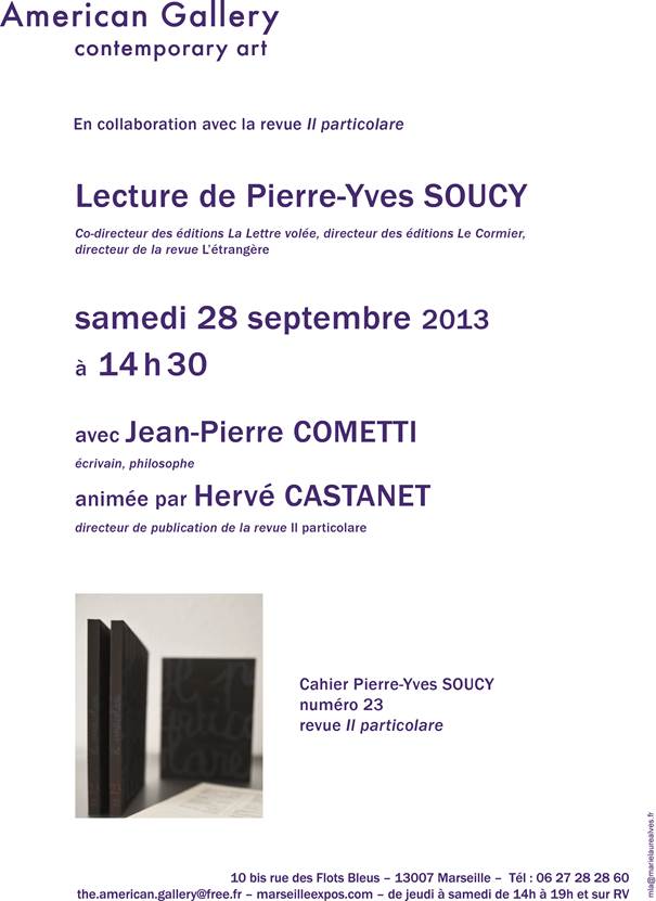 Il Particolare, n° 23 « Pierre-Yves Soucy », Marseille, 2013, 20,00 €.