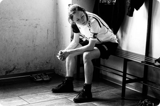 A l’inverse de ce qui se passe souvent dans un tel milieu, la photographe n’insiste jamais sur l’aspect éventuel lesbien qui entoure ce milieu (à l’inverse du foot masculin où l’homosexualité est un tabou). Les photos ont été prises principalement en « backstage » dans les vestiaires et pendant l’entraînement.