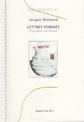 Jacques Brémond, Lettres perdues (courriers accidentés), Editions Atelier Vincent Rougier, coll. « Plis Urgents 41 », complément de la collection de la revue « ficelle », 2016.