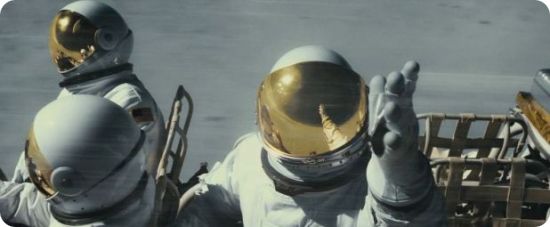Les images iconiques de la conquête spatiale ne manquent pas non plus, tel ce plan répété de l’astronaute au premier plan se rapprochant de la fusée dressée sur son pas de tir au lointain. Il faut souligner également une direction artistique remarquable, la photo pendant l’épisode lunaire est magnifique de contraste et se rapproche des films couleur kodakrome d’époque des missions Apollo.