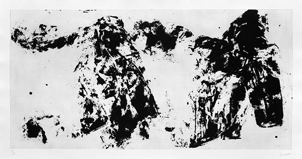 En guise de quasi conclusion à son oeuvre, Jannis Kounellis a réalisé dans l’atelier Albicocco d’Udine une suite impressionnante de douze grandes gravures. Il s’agit de reliquaires plastiques de pelisses ou plus exactement de manteaux. L’être en est sorti mais sa présence rampe comme dans toute l’oeuvre où le plasticien s’est souvent amusé à reproduire des habits (chapeaux, etc.) sans niveaux, ni maîtres.