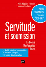 Jean-Baptiste Frossard, en collaboration avec Laurence Devillairs, Servitude et soumission : La Boétie, Montesquieu, Ibsen, PUF, 2016, 320 p. – 17,90 €.