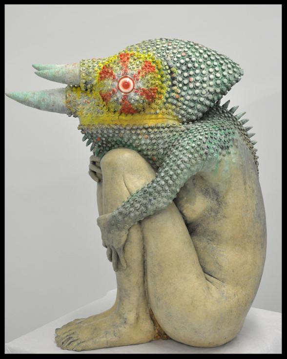 Néanmoins, l’artiste ne réduit pas son imaginaire à être un dégagement de la vie. Demeure l’avènement dans ses fables aigres douces d’une morale revigorante. L’ogre n’est jamais loin, la malignité rampe là où les images permettent de les cerner par une saisie différentielle en un seuil limite de visibilité au-delà des évidences et là où il y a autant de poissons sans mer que de mères sans poison. Celui qui se nommait « enfant céramiste qui a fait sa crise d’adolescence » (mais il y a bien longtemps) transforme son médium en moyen de scénariser bien avant d’autres ce qu’on nomme un post-humanisme.