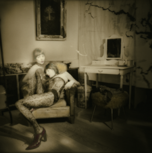 Jonathan Abbou joue sur l’opposition entre la réalité et sa fiction. Au regardeur de reconstituer à travers les émulsions ce qu’il voit, de retrouver des harmonies du soir au milieu de l’intimité dévoilée selon diverses dérives. Les égéries de l’artiste restent de belles étrangères qui, dans la chambre noire, sont transformées. Les résilles de leurs bas deviennent les filets de leur insouciance, de leurs délices et de leur prétendue « immoralité » dont l’artiste ne cesse d’attiser le feu. Qu’importe si la photographie est une feinte, il s’agit de s’y laisser emporter.