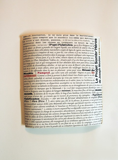 Joseph Mouton est un parfait irrégulier (formule qui pour certains lettrés semblera un ou une oxymore – je n’ai jamais été un spécialiste du genre). Prof d’esthétique à Nice (ce qui prouve un certain bon goût), l’auteur a publié deux livres savants sans se prendre au sérieux et publia jadis des textes dans deux revues majeures “TXT” et “Java”. Plus récemment, il a proposé le farcesque et génial Le projet Sombr’ Héros, son journal héroïque avec une typographie de Dominique Figarella puis ses StennoS périodiques chez Sitaudis.