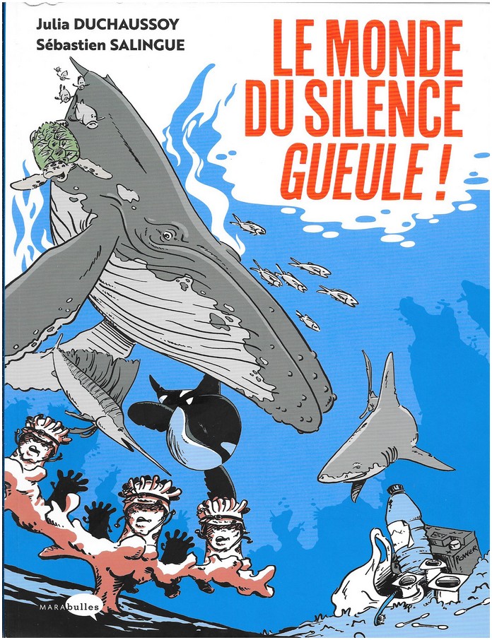 Julia Duchaussoy (scénario d’après sa pièce de théâtre) & Sébastien Salingue (scénario, dessin et couleur), Le monde du silence gueule ! Marabulles, avril 2023, 128 p. – 19,95 €.