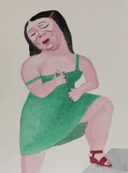 Souvent la femme est rêveusement fluide et violemment calibrée, bordée et débordante, géométrisée mais pulsionnelle, animée. Bref, délibérément sommaires, les peintures tirent leur force de leur fascination.