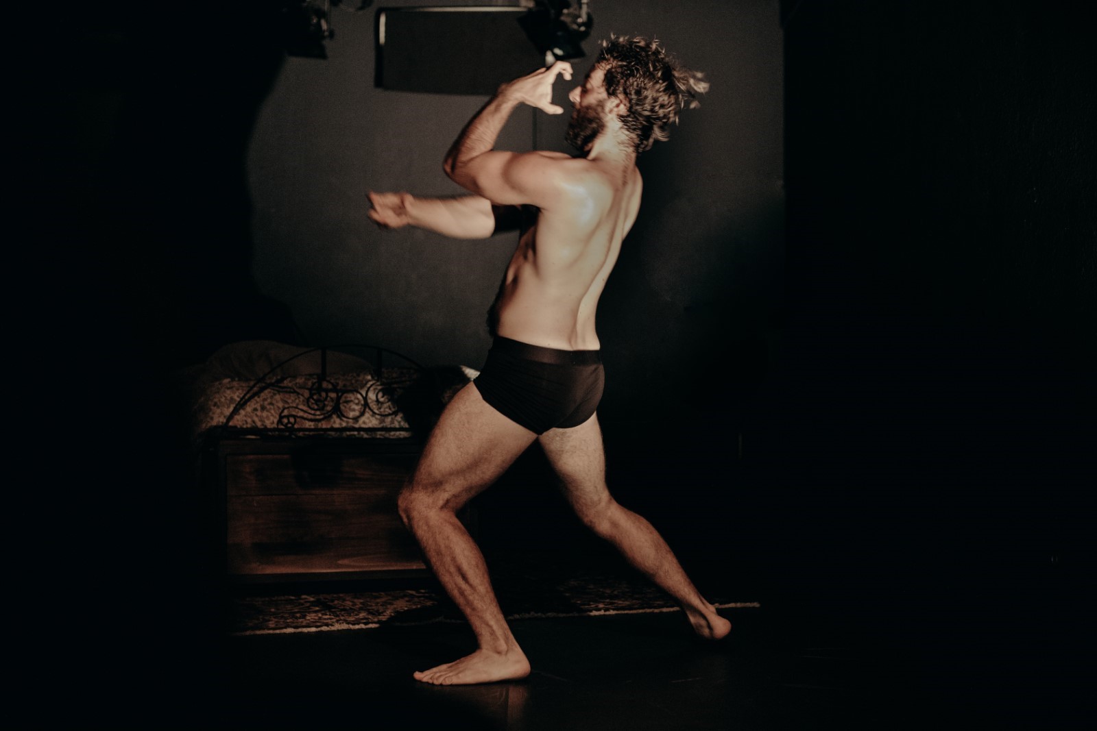 Un bruit sourd, une forme se meut dans le lit : la couette bouge de façon curieuse. En émergent des bouts de membres (pieds, mains) surdimensionnés. Le corps de Killian Chapput est utilisé dans son caractère atypique. Grand, gauche, leste, il alterne les figures gymniques avec des mimiques simples, non dénuées d’un aspect animal.