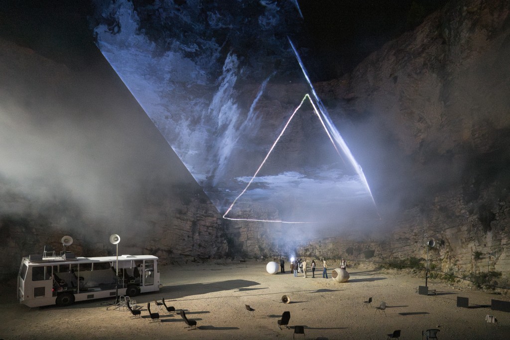 Le lieu, la carrière de Boulbon, est évidemment impressionnant ; il y a tout un ensemble de procédures pour s’y rendre, comme pour faire de sa propre présence un mérite, au milieu d’un personnel d’accueil et de sécurité en nombre. Une fois rassurés d’être là, nous pouvons regarder.