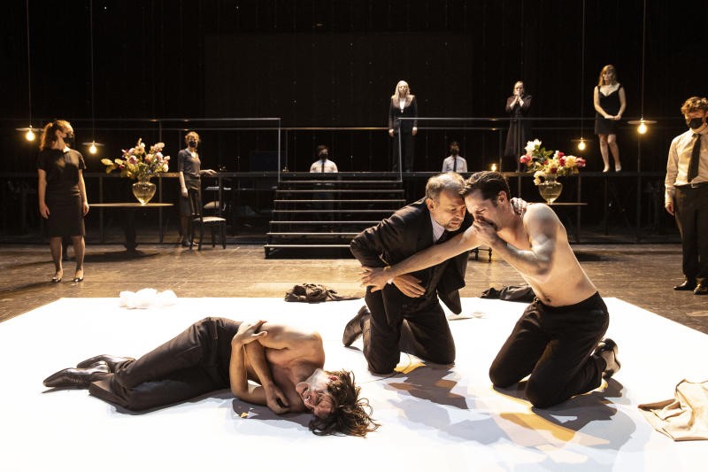 Le chaos règne donc dans une famille désormais dysfonctionnelle, dirigée par un père despotique, lui-même sous l’emprise du faux dévot. Et Ivo van Hove de dire, dans une interview donnée à Laurent Muhleisen : « (…) tout présage d’une bataille que vont se livrer conservateurs et progressistes », d’où un espace délimité au milieu de la scène par un rectangle blanc, sorte de ring de la parole où fusent les arguments.