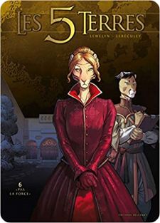 Lewelyn (David Chauvel, Andoryss et Patrick Wong) scénario, Jérôme Lereculey (dessin)& Dimitris Martinos (couleur), Les 5 Terres – t.06 : Pas la force, Delcourt, coll. « Terres de légendes », juin 2021, 56 p. – 14,95 €.