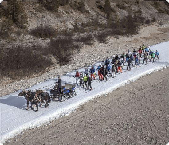 Le photographe de Vicenza depuis 2015 poursuit une enquête et une narration sur la relation entre tourisme de masse et climat. Il montre par exemple le spectacle grotesque des skieurs sur les neiges artificielles des Dolomites.