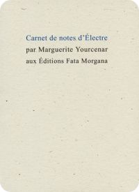 Marguerite Yourcenar, Carnet de notes d’Électre ,Texte établi et présenté par Achmy Halley, Fata Morgana, Fontfroide le Haut, 2017, 40 p.