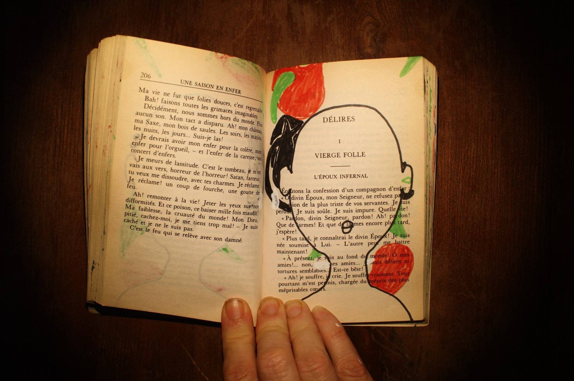 Partant de l’idée des « flip-books » (en tournant leurs pages rapidement un film se déroule) et de la demande faite aux enfants dont elle s’occupe dans ses ateliers de dessiner sur des livres, Marie Paccou reprend la technique et l’intervention iconoclaste A la page vierge du genre sur lequel se pose le dessin, elle préfère donc celles de livres déjà écrits et de leur sens. La réalisatrice de films d’animation, crée donc au plus près de la littérature, ce qu’elle nomme ses « flipped books » qui sont aussi des petits films selon « une contrainte assez oulipienne qui vise à adapter le contenu d’un livre dans le nombre de pages de l’ouvrage. » Dolto et le plaisir féminin, Queneau et ses exercices de style, Homère lui-même deviennent les vecteurs (ébahis s’ils étaient encore là) de tels assauts aussi drôles que poétiques.