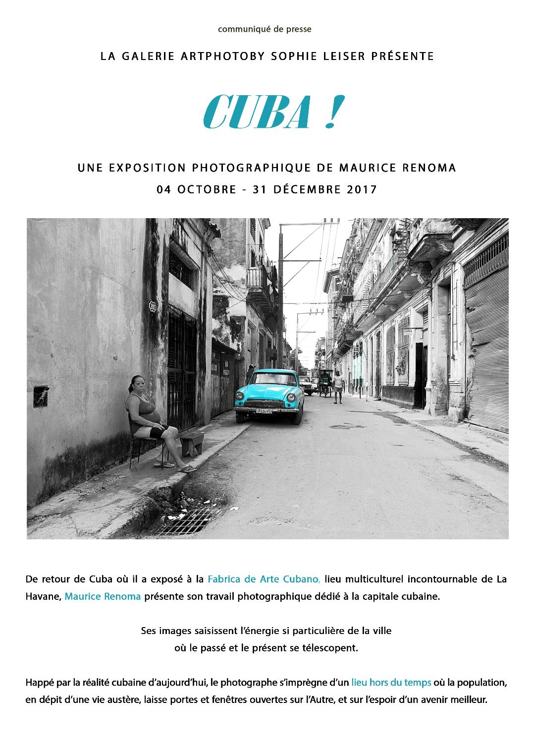 Maurice Renoma, Cuba !, Galerie Artphotoby, Sophie Leiser, 4 octobre – 31 décembre 2017.