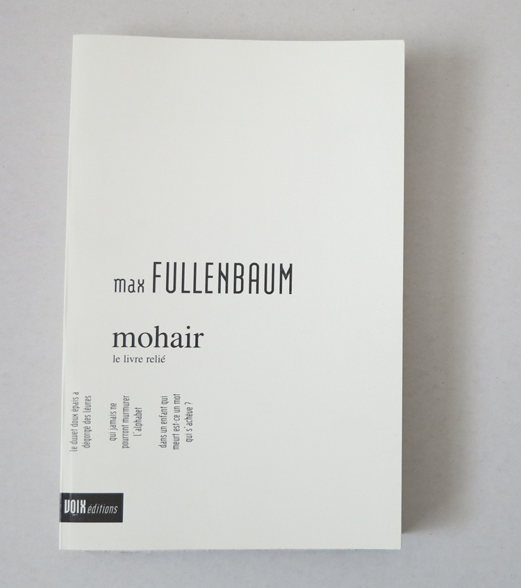 Max Fullenbaum, Mohair suivi de Mot à mot oratorio, Voix Editions, Richard Meier, 2016, -26,00 €.
