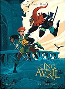 Michel Bussi & Fred Duval (scénario), Noé Monin (dessin), Antoine Lapasset (couleurs), Cinq Avril – t.02 : Le Roi assassin, Dupuis coll. « Grand Public », juin 2023, 56 p. – 12,95 €.