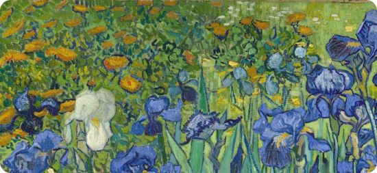 Van Gogh la vécut avec, par et pour la peinture. Que les iris soient têtes en bas importe peu : « le beau va jusqu’à lécher la table ».